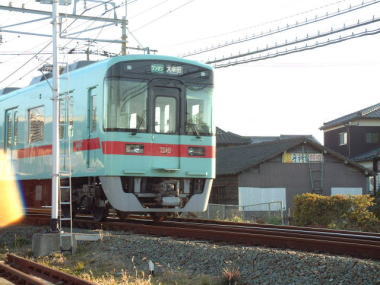 西鉄大牟田線大溝駅付近にあります。 この電車は8000系電車で6両編成になっています。 主に特急に使用されています。 西鉄電車の最高速度は時速110kmくらいです。 さすがに線路の側でしたので シャッターを押したあとは、風圧を受けました。 しかしJRのつばめであったなら、危険なので こんな撮影を、しようとは思いません。 撮影地:福岡県大木町大溝 |