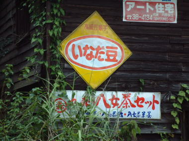 ’いなだ豆’さんの看板です。 ダルマックスと同じ大牟田市に会社があります。 「まめまめまんぼ」の歌が袋の裏に書いてあると思います。 福岡のラジオでは今でもコマーシャルで歌が流れています。 この国道3号線の立花町では、’いなだ豆’さんの看板が 集中しています。 撮影地:福岡県立花町上辺春 |