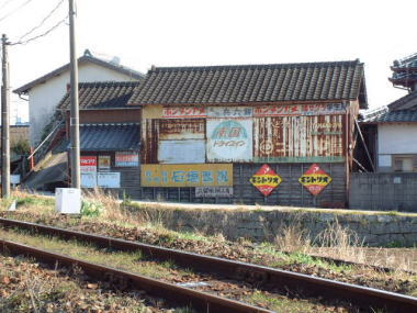 西鉄甘木線学校前駅にある ’ほてい’さんと’おたふく’さんです。 学校前駅は、その名のとおり、小学校の前に 駅があります。 学校の前には、このような商店が必ずあったものです。 文房具と菓子類、お好み焼きなどが定番でした。 最近では、このような商店を経営する方も 高齢になられて、店を閉められるところがほとんどです。 学校前の看板は店の運命にかかっていると言えます。 撮影地:福岡県久留米市宮ノ陣 |