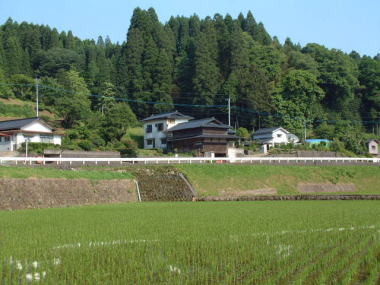 南小国町には九州で最もリピーターの多いと言われる 黒川温泉があります。 同町には満願寺温泉もあり、近くには杖立温泉 筋湯温泉など様々な温泉地があります。 それにもかかわらず、黒川温泉が注目されるとは とても驚くべきことです。 大変な経営努力をなされているのでしょう。 さて、看板はどこにあるのかと思われるでしょうが 黒く見える農家の納戸に貼ってあります。 ちょうど田植えが終わったところです。 撮影地:熊本県南小国町長迫 |