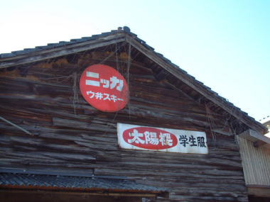 ’ニッカウヰスキー’と’太陽櫻学生服’の看板です。 ニッカの工場が大分県日田市にありました。 工場見学ができて、試飲コーナーもありました。 会社の旅行で行ったのを覚えています。 しかし、数年前に工場もろとも閉鎖されてしまいました。 昨年、日田市にはサッポロビールの工場が出来ました。 同じように、工場見学が出来て、ビヤホールもあります。 お酒業界も大変なようです。 撮影地:福岡県高田町下楠田 |