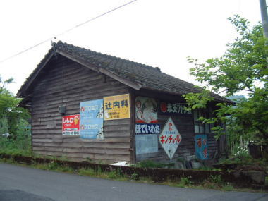 商店の柱に貼ってある小型看板も 珍しい存在になりました。 このような商店が少なくなってきているからです。 商品構成は食料から雑貨まで多種多様なわけで 現在のコンビニと大きな違いがあるわけでもないのです。 それでも現在は田舎にもコンビニエンスストアが どこにでもあるようになりました。 この商店は、そういった時代背景の中でも 小奇麗にされて経営を続けられています。 撮影地:熊本県南関町坂下 |
