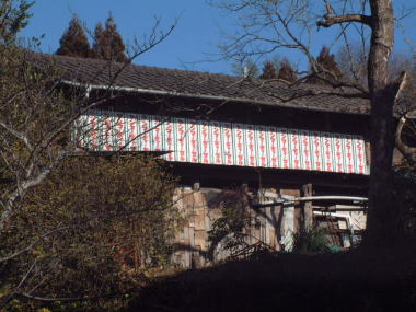 小国町の両神社境内前を流れる田の原川対岸の 珍しい位置に貼ってあります。 よくもこんなところに貼ったのだと感心してしまいます。 田の原川の上流に黒川温泉があります。 撮影地:熊本県小国町皿山 |