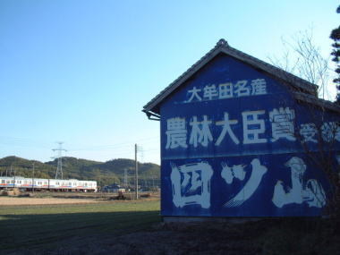 仔豚用人工乳ママの看板です。 協同飼料の看板は種類が豊富で楽しませてくれます。 小国町の「さくら」も同じようなパッケージですので それも人工乳の飼料なのでしょうか。 五和町は有明海の湾口に位置しています。 対岸の島原半島加津佐町との間は早崎瀬戸の海峡で 小アジなどの小魚を食べにイルカが群れをなして 回遊してくるところだそうです。 通詞島はイルカウォッチングが観光資源となっています。 また、五和町鬼池港から島鉄フェリーを利用しますと 長崎県口之津町まで簡単に行けます。 天草は長崎県島原半島と近い位置関係にあるのです。 撮影地:熊本県五和町井手手野 |