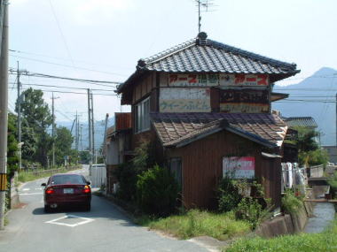 湯田温泉 JR山陽本線嘉川駅付近では線路沿いに旧道が 残っていますが、レトロ看板はほとんどありません。 国道2号線の旧道は、いったいどこを 通っていたのでしょうか。 看板捜しの基本として、当時の幹線で現在も残る 旧道と当時の国鉄沿線を調査することです。 それを地図を眺めながら推察して計画を立てるのです。 やみくもに車を走らせて調査しても、そうは簡単には 発見できません。計画が大事です。 しかし実際に行ってみて、ありそうな雰囲気でない場合は 柔軟に計画を変更し、辺りをうかがいながら調査を 進めていくことも必要になってきます。 撮影地:山口市嘉川 |