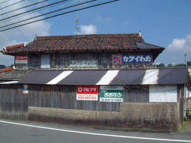 3号看板 4号看板 秋穂町大河内の周防灘海岸に沿った旧道にあります。 隣りの家にガレージが建てられて、横からしか 見えなくなっています。 ’カクイわた’さんの大判ねんねこ看板も見えます。 大判ねんねこ看板は山口県では、いろんなところで 遭遇します。しかもほとんどが琺瑯看板です。 それに対して九州の大判ねんねこ看板は 福岡県では琺瑯加工されていないものがほとんど全部。 琺瑯加工されているものは、佐賀県で比較的多く 見かける程度です。掲出時期の違いが原因であると 思います。 |