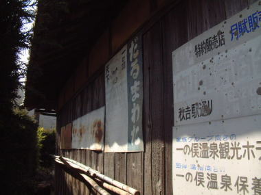 美祢のおたふくさん 時代の流れの中でレトロ看板が消滅していくのも 看板を捜していくうちに頷けるようになりました。 50年前の家屋で、看板の生命ともいえる 壁板が張り替えられることもなく そのまま残っていない限り 確実に消えていく運命にあるのです。 撮影地:山口県美祢市重安 |
