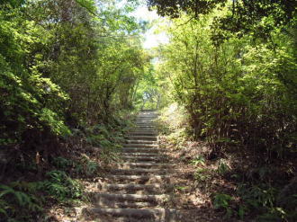 四ッ原から長助金毘羅への登山道 長助金毘羅の手前から分岐する 小岱山北東部の南関町四ッ原からの 登山道です。 四ッ原からの登山道は、このような 階段の登りが連続しています。 高度はグングンと稼いでいきますが 登るには、少し体力が必要です。 10月7日撮影 |