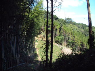 三池宮と三池山山頂との鞍部 三池山の北側に突き出た三池宮の山頂から 三池山山頂との間にある鞍部です。 意外にきつい傾斜になります。 三池宮からは、この鞍部からの 坂を登りつめれば三池山山頂です。 10月14日撮影 |