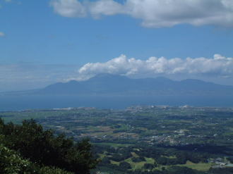 観音岳から見た雲仙の山々 島原半島は有明海をふさぐように突き出た 火山活動によってできた半島です。 平成の普賢岳噴火の時は、火砕流発生の際に 火山灰が対岸の熊本県にしばしば 飛来してきました。 8月15日撮影 |