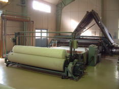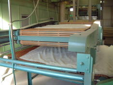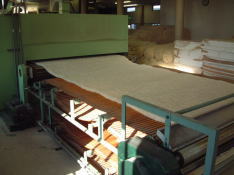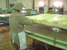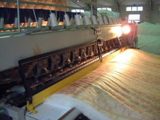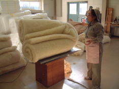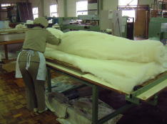 18.羊毛原料の充填 多頭ミシン用のラップ状 成型わたを つくる作業です。 |