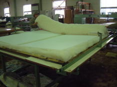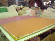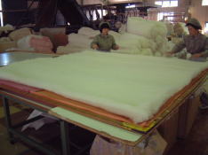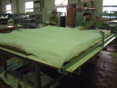 8.ラチス振り カードされた羊毛わたは ラチスの振り幅で シングルサイズや ダブルサイズなどに 成型していきます。 |