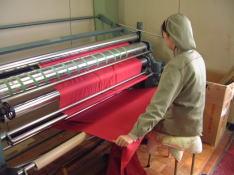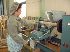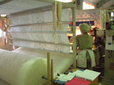 41.テープ巻き取り 敷ふとんの周囲を縫う ためのテープを紙管に 巻き取っているところです。 |