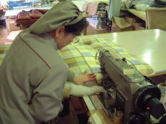 48.テープ付け こたつ敷ふとんの テープ付けをしている ところです。 |