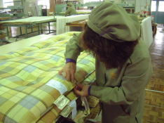 42.テープの切断 敷ふとん本体と同じ柄の テープを必要分切断して いきます。 |