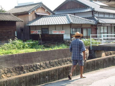 藤生の看板 このオジサンは猿を散歩させています。 猿師なのでしょうか。 画像に写っている川で猿を遊ばせていました。 遊園地や動物園での、お猿のショーは 見たことは何度かありますが いきなり、お猿の散歩に遭遇するのは 初めての経験でした。 岩国市藤生では有名なオジサンかもしれません。 撮影地:山口県岩国市藤生 |