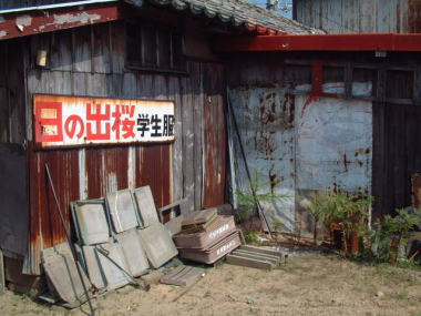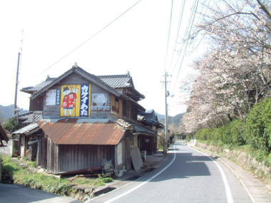 湯田温泉 JR山陽本線嘉川駅付近では線路沿いに旧道が 残っていますが、レトロ看板はほとんどありません。 国道2号線の旧道は、いったいどこを 通っていたのでしょうか。 看板捜しの基本として、当時の幹線で現在も残る 旧道と当時の国鉄沿線を調査することです。 それを地図を眺めながら推察して計画を立てるのです。 やみくもに車を走らせて調査しても、そうは簡単には 発見できません。計画が大事です。 しかし実際に行ってみて、ありそうな雰囲気でない場合は 柔軟に計画を変更し、辺りをうかがいながら調査を 進めていくことも必要になってきます。 撮影地:山口市嘉川 |