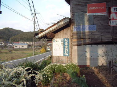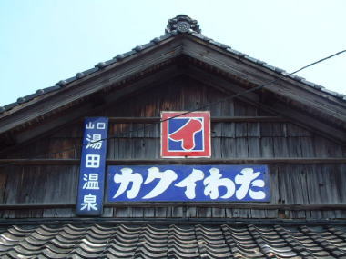 4号看板 3号看板 だるまわた看板は、萩付近まで掲出したようです。 三隅町は長門市と萩市の中間にあります。 木造の家が比較的多く残ってはいますが だるまわた看板に限らず看板そのものが少なく ある意味で、さっぱりした風景の家並みです。 撮影地:山口県三隅町豊原 |