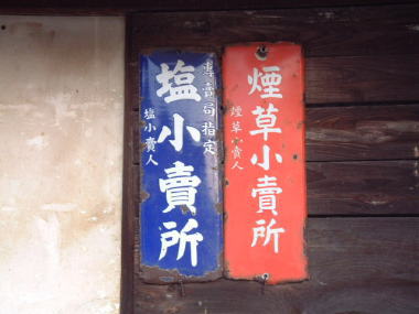 塩と煙草の小売所看板 塩と煙草の販売営業許可の看板です。 山口県の田舎の商店では、よく見かけます。 今でも、この看板の効力が存在しているのでしょう。 撮影地:山口県美祢市西厚保町 |