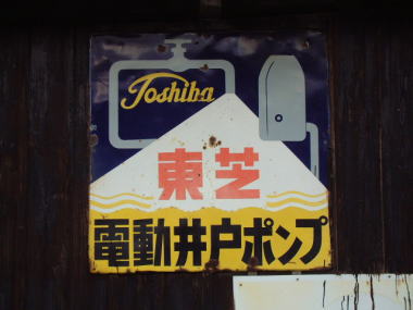 東芝電動井戸ポンプ 美祢市の東隣りには、カルスト台地の秋吉台が 広がっています。 地下には、秋芳洞をはじめ侵食で出来た 多数の鍾乳洞があります。 つまり、このポンプの看板は、地下水が豊富な 地域であることを物語っているとも思います。 撮影地:山口県美祢市大嶺町 |