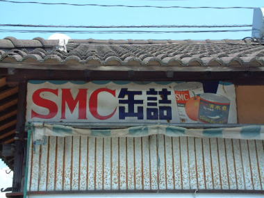 SMC缶詰 缶詰の看板で、いつごろの製作か分りませんが 琺瑯加工が施されたレトロを感じさせる看板です。 色彩が鮮やかで、おいしさを醸し出しています。 他の看板マニアのページでも紹介されています。 撮影地:山口市四辻 |