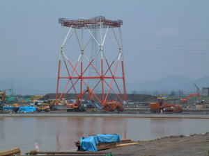 |  | ’大牟田エコタウン事業’の中心は RDF発電所であることは間違いありません。 この櫓はおそらく、RDF燃焼炉のものであると 思われます。 14年9月撮影の状況は 向日葵で紹介しています。 |