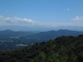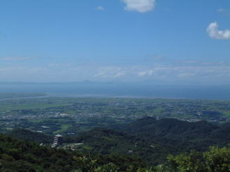 観音岳から見た天草方面 有明海の南側を見たところです。 遠くに天草上島の山が、うっすらと見えます。 また、菊池川河口が左側に見えます。 左手前には、浄土宗開祖の法然上人の 師匠の皇円上人をまつる 蓮華院誕生寺奥之院が見えます。 8月15日 |