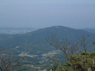 長助金毘羅から見た三池山 長助金毘羅は小岱山の北側の高い峰で あるため、三池山が最も近くに見えます。 ちょうど、標高差にして100mあります。 少し見下ろすような感じになります。 10月7日撮影 |
