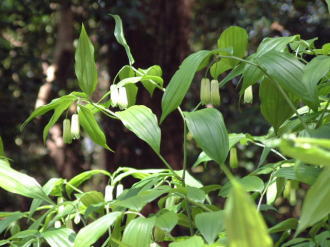 ホウチャクソウの花 ユリ科の花です。 春の野山では、どこでも見かけます。 小岱山に比べますと、三池山の方が 頂上に池があるくらいですから 山全体に湿気を感じます。 野草もはるかに三池山の方が多いです。 4月27日撮影 |