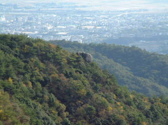 唐渡岩 唐渡岩は観音岳から西側斜面を下った ところにあります。 荒尾展望台からは、このように見ることが できます。 観音岳にザックを置いて 見に行かれる方を時々見ますが 私はまだ、行ったことがありません。 小岱山は、その日の気分でオプションが 広がる山なのです。 ちなみに、平野の街なみは玉名市です。 |