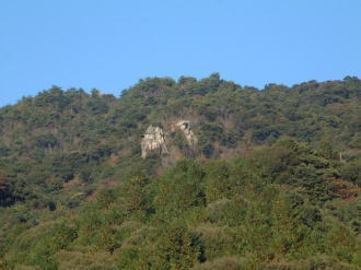 人形岩 唐渡岩とならんで小岱山の名所岩です。 人形に見えるので、その名がついたそうです。 荒尾市樺から荒尾展望台への登山道の 途中からも見えますが、小岱山林道から 見たほうが、全体がわかります。 |