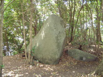 筒ヶ岳城の大石 筒ヶ岳の山頂には山城があったそうです。 この大石は財宝を隠すために置いた 重しのための大石であるといわれている そうです。 縦走路の途中にあります。 4月28日撮影 |