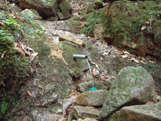 菜切川源流 小岱山筒ヶ岳と七峰台との間にある 鞍部から少し下ったところに 水が斜面から湧き出ているところがあります。 有明海に流れる小さな河川の菜切川の 源流ではないかと思われます。 |