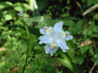 シャガの花 アヤメ科のきれいな花でよく庭にも 植えてあります。 左側に蕾が写っていますが ねじるように花が開くのでしょう。 三池山の登山道の日陰によく咲いていました。 4月27日撮影 |