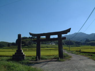 南関町四ッ原より見た小岱山 南関町四ッ原は小岱山の東北に位置する のどかな田園地帯です。 この鳥居は菅原神社の鳥居です。 この奥に本殿があるのでしょう。 電線がなければ、もっときれいなのですが・・・ 9月16日撮影 |